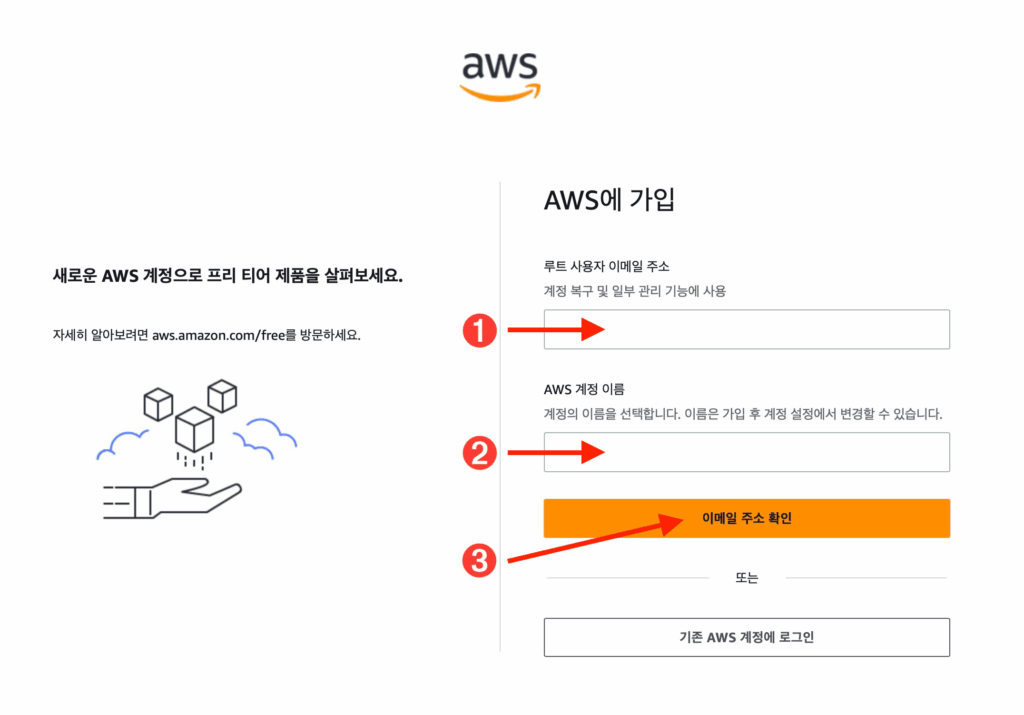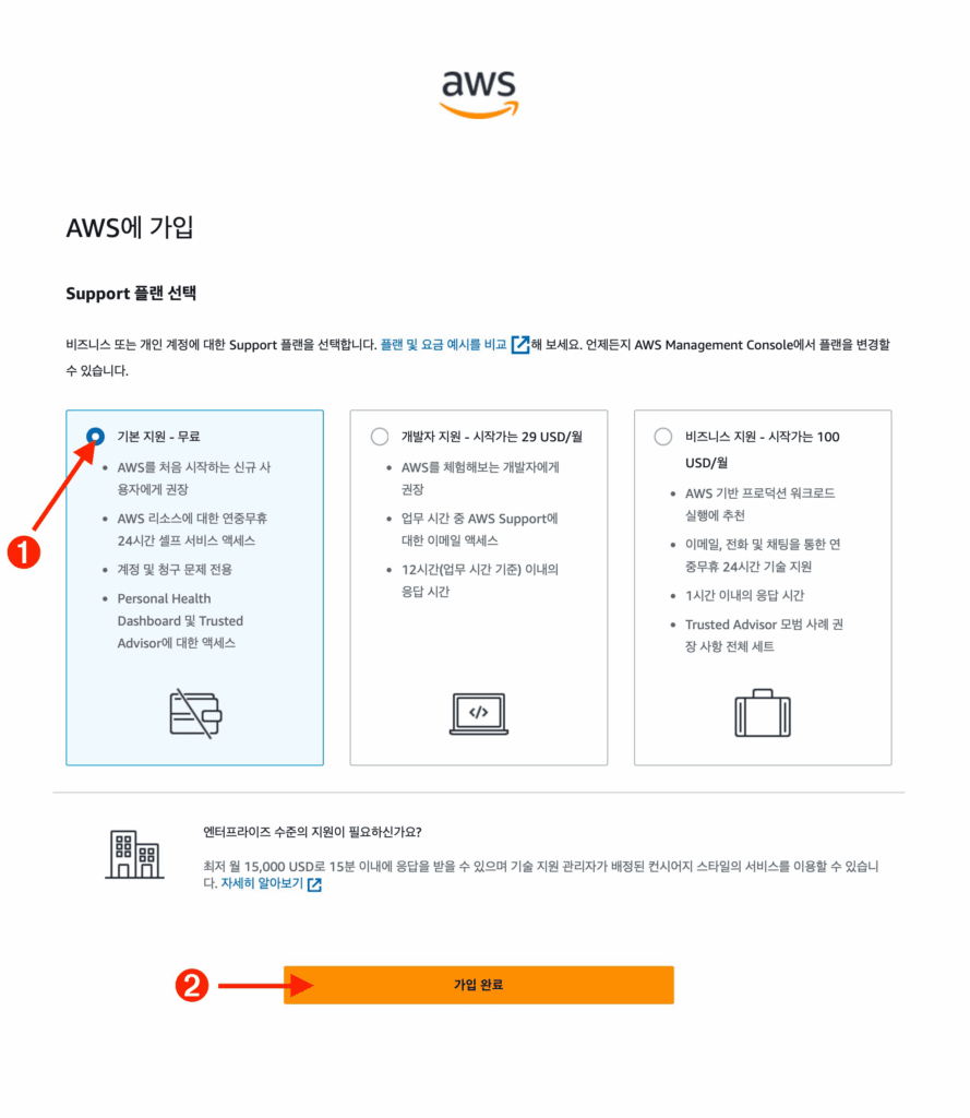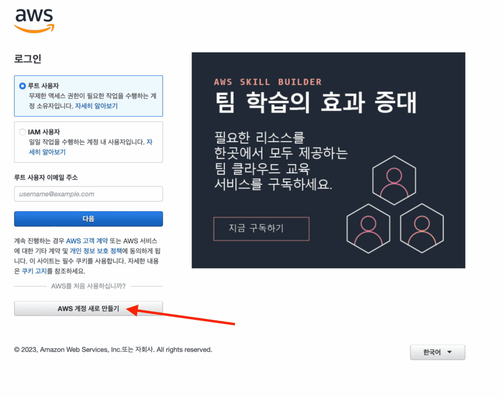 1. 링크를 클릭해서 AWS 로 이동해주세요 → [링크]