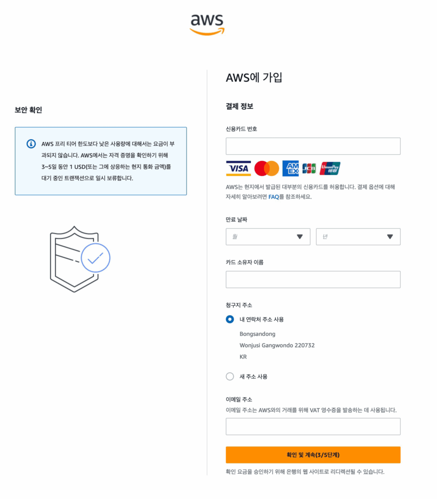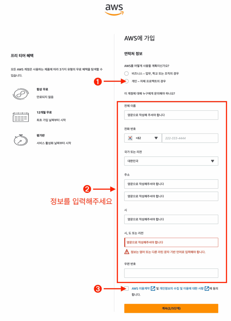AWS 호스팅 가입 가이드입니다. 아래의 절차에 따라서 가입을 완료해주시고, 정보를 오른쪽 하단의 카카오톡이나 크몽챗을 통해서 공유해주시기 바랍니다.